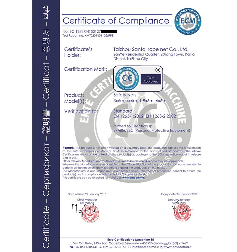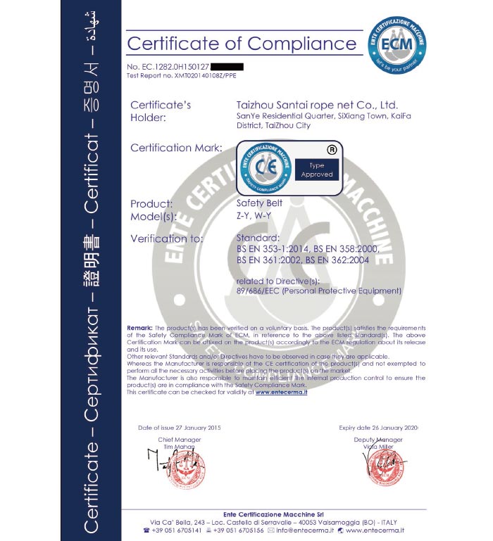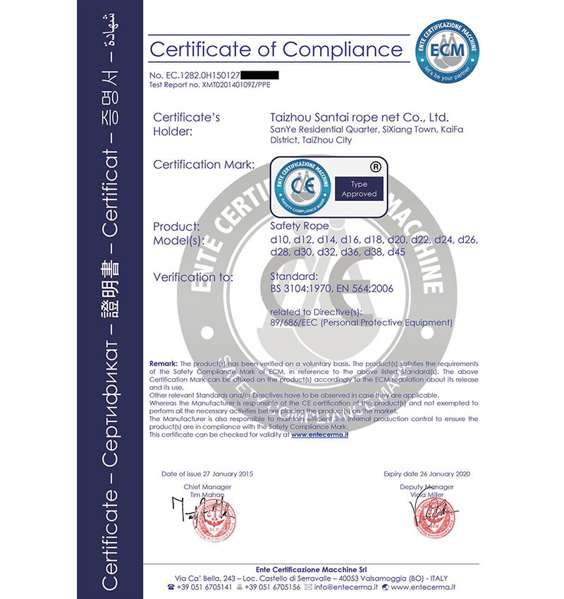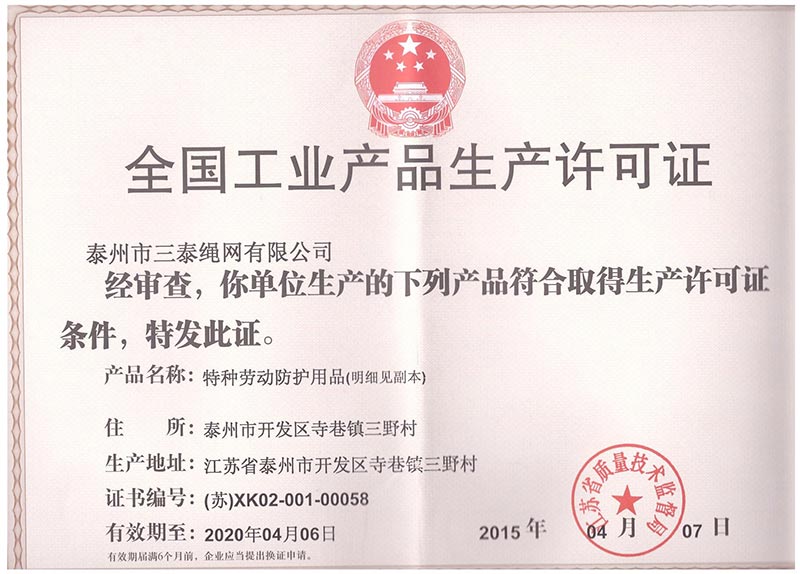 泰州市三泰健康科技有限公司(原 泰州市三泰繩網(wǎng)有限公司),本公司成立于1988年12月22日,至今近30年的生產(chǎn)歷程。多年來的生產(chǎn)經(jīng)驗,加之我們不斷的創(chuàng)新,已經(jīng)建設(shè)成為集研制、開發(fā)、生產(chǎn)、銷售為一體的龍頭企業(yè)。公司生產(chǎn)線由捻線車間、制繩車間、織網(wǎng)車間、織帶車間、織(絞)繩車間、安全網(wǎng)組裝車間、安全帶組裝車間、檢驗室等組成。企業(yè)現(xiàn)有職工155人,企業(yè)管理人員6名,市場研發(fā)人員8名,專業(yè)質(zhì)檢人員2名,......